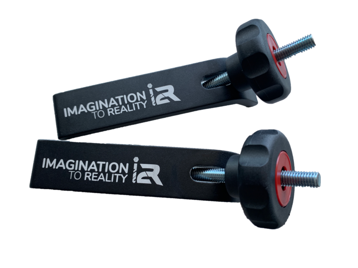 The robust 5/16” T-bolt slides easily into the extruded table T-slots, and is long enough to capture nearly any material up to 3” thick. The aluminum clamping arm is 1-1/8” wide by 5-1/4” long, and is anodized to avoid marking of your materials. A large, knurled handle allows you to easily tighten to the desired pressure. Sold in pairs.